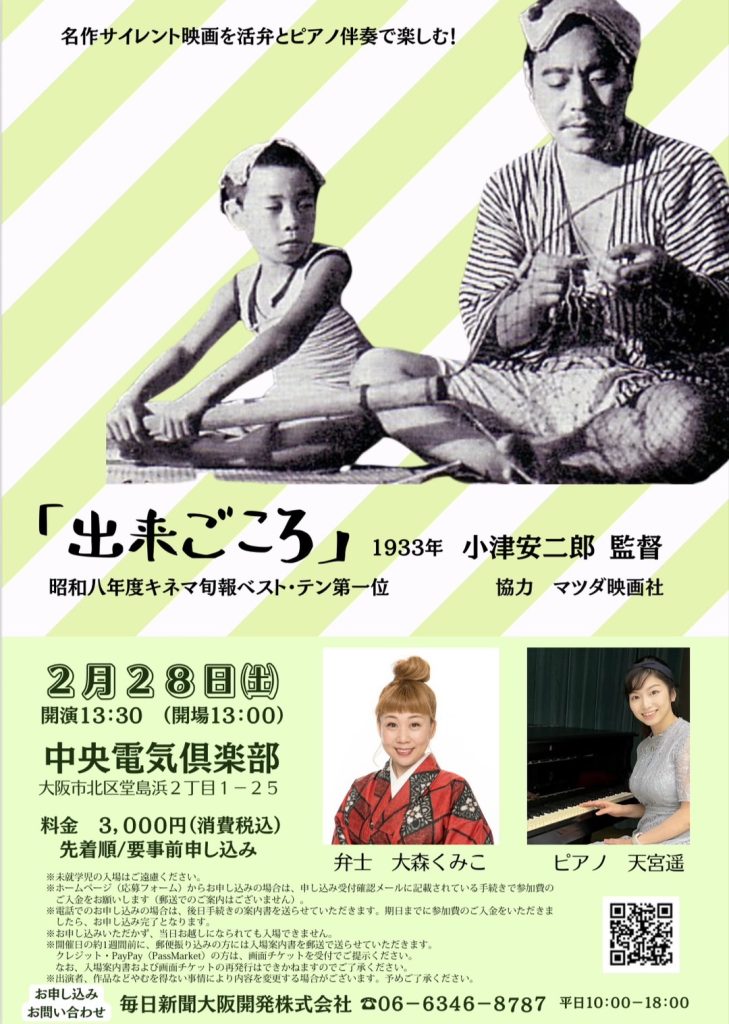 大森くみこさんの活弁による小津安二郎作品「出来ごころ」(1933)